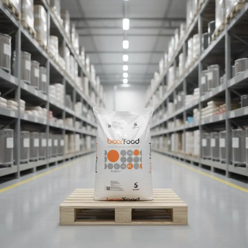 - El bicarbonato de sodio grado alimenticio (NaHCO₃) es un polvo blanco e inodoro, de alta pureza, utilizado en la industria alimentaria como agente leudante, regulador de pH y neutralizante de ácidos. Se aplica en panificación, productos cárnicos, bebidas y alimentos procesados, ayudando a mejorar textura, color y estabilidad. Cumple con los estándares internacionales de calidad y seguridad alimentaria.